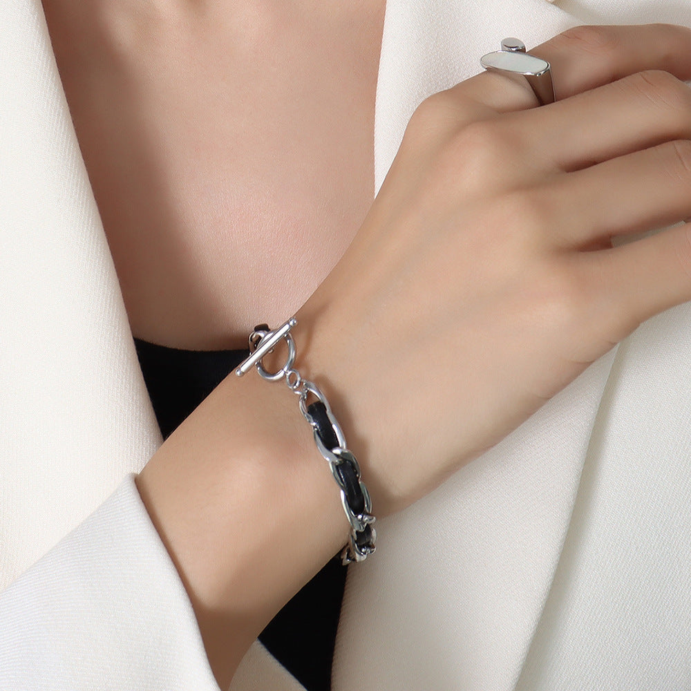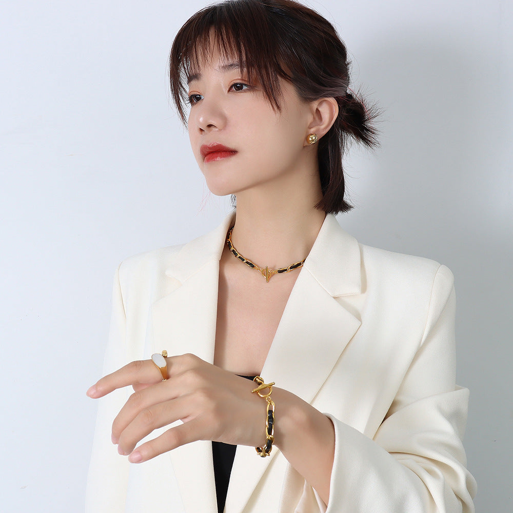 Hip hop design 18k real gold leather rope bracelet jewelry